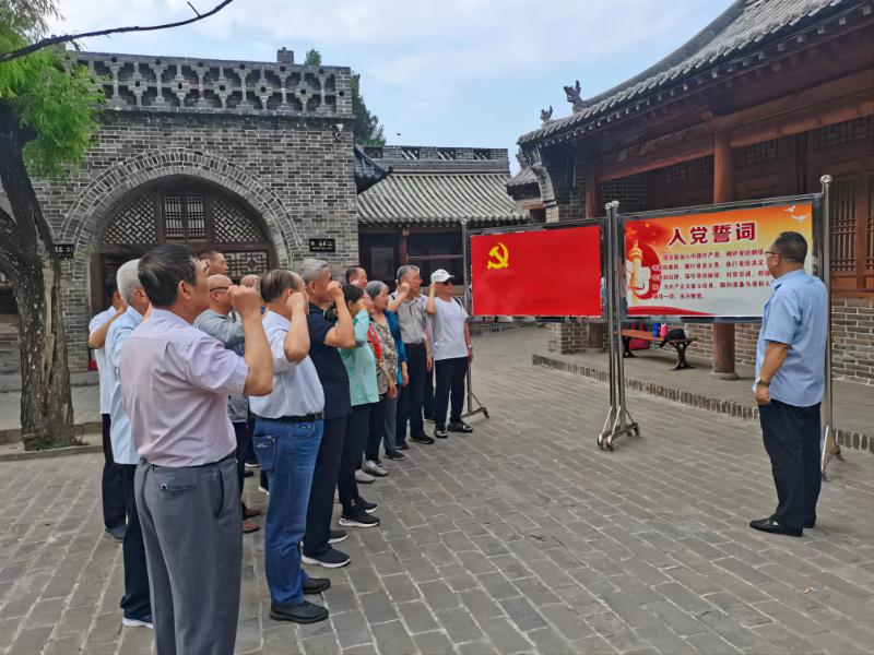 最后,参加活动的全体老党员,在高家沟高级军事会议会址大厅前进行了重温入党誓词活动,由离退休党总支书记刘星明同志领誓。