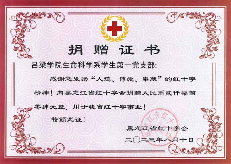 生命科学系党总支深入开展学习贯彻习近平新时代中国特色社会主义思想主题教育,用党的创新理论不断探索新型党建模式,创新党建工作举措,加强党员思想教育,积极引导学生党员、入党积极分子创先争优,为群众办实事。7月末在河北、黑龙江发生重大自然灾害后,向全系学生党员、积极分子发出“倡议书”,践行共产党员的初心使命,充分发挥党支部战斗堡垒作用和党员先锋模范作用。